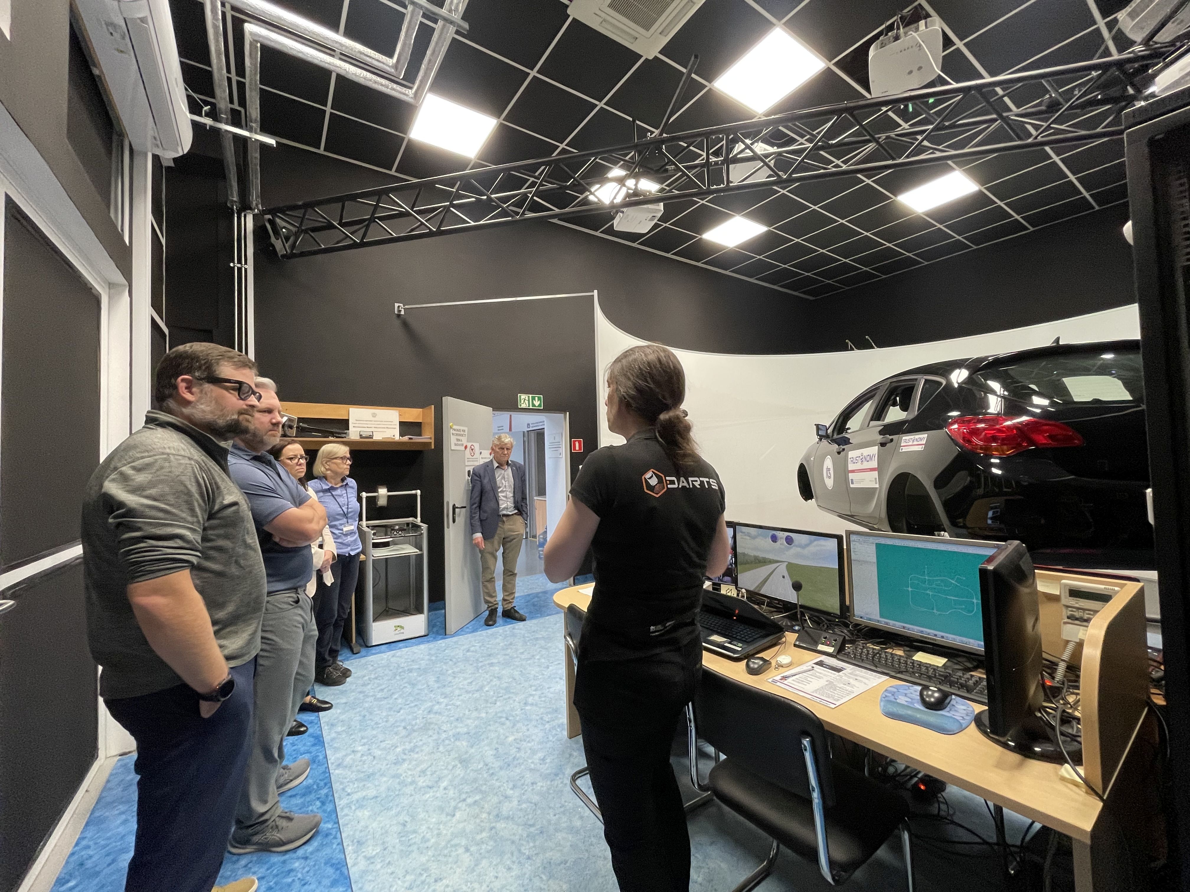 Uczestnicy spotkania mieli okazje zapoznać się także z zakresem projektów prowadzonych przez pracowników Instytutu - przedstawiono założenia projektu DARTS, w ramach którego rozwijana jest międzynarodowa baza danych do badań nad pojazdami autonomicznymi i połączonymi. Zademonstrowano również platformę pomiarową 360 zakupioną w projekcie, prezentując jej możliwości analityczne.