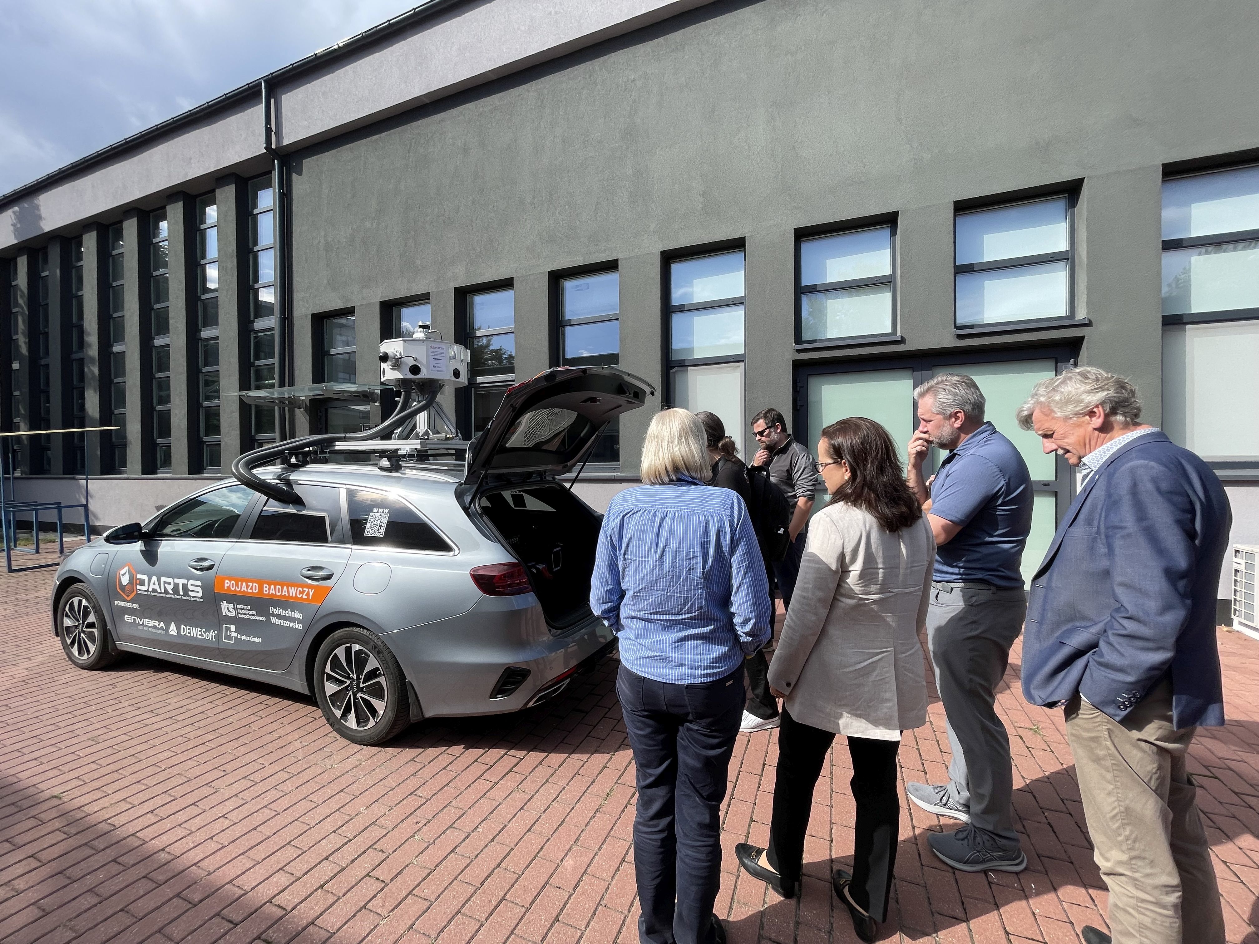 Uczestnicy spotkania mieli okazje zapoznać się także z zakresem projektów prowadzonych przez pracowników Instytutu - przedstawiono założenia projektu DARTS, w ramach którego rozwijana jest międzynarodowa baza danych do badań nad pojazdami autonomicznymi i połączonymi. Zademonstrowano również platformę pomiarową 360 zakupioną w projekcie, prezentując jej możliwości analityczne.