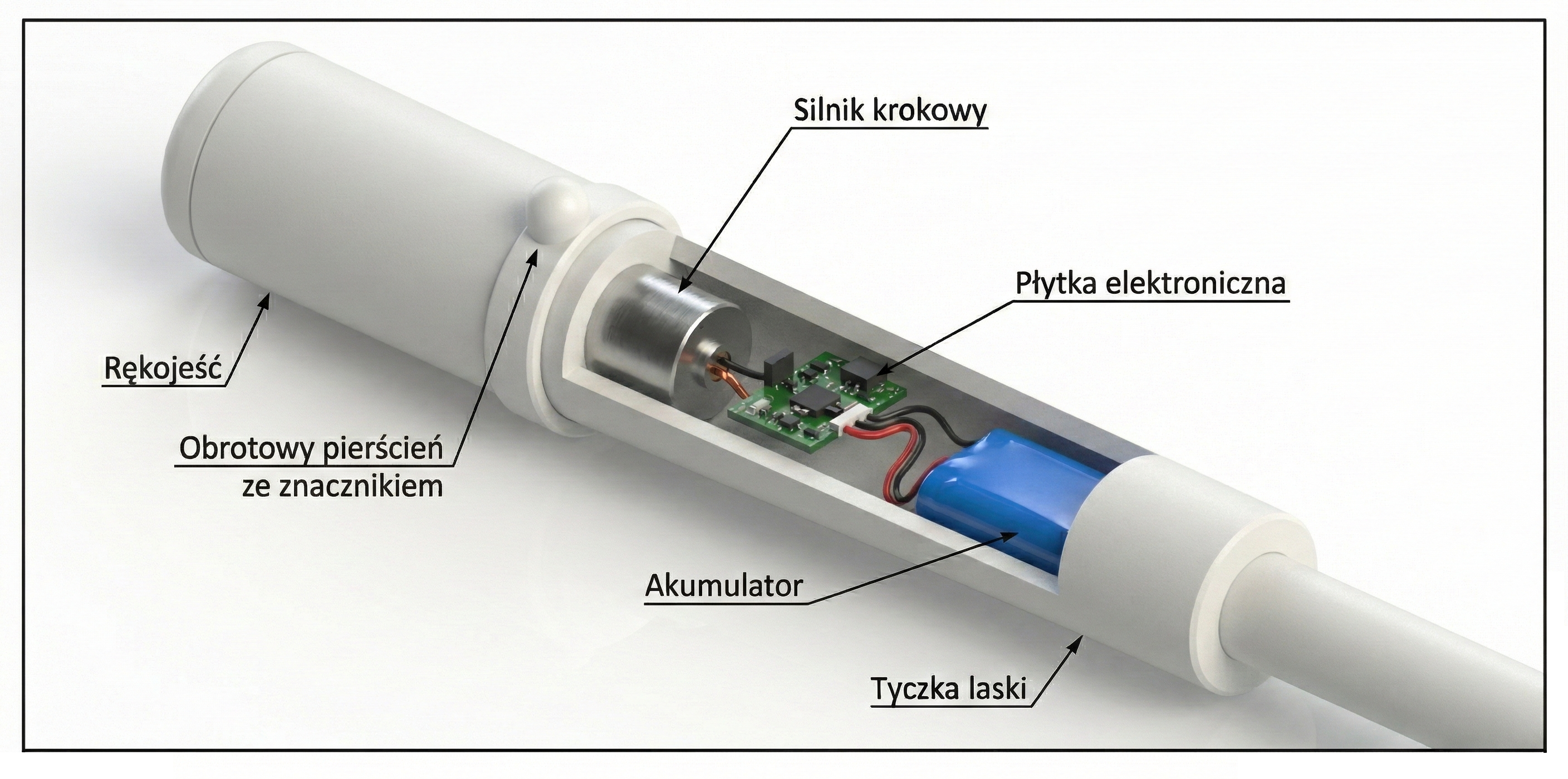 System działa całkowicie autonomicznie: nie wymaga internetu, aplikacji, GPS ani konfiguracji. Laska jest gotowa do użycia od razu po włączeniu, co czyni ją rozwiązaniem dostępnym dla osób w każdym wieku i w każdych warunkach.