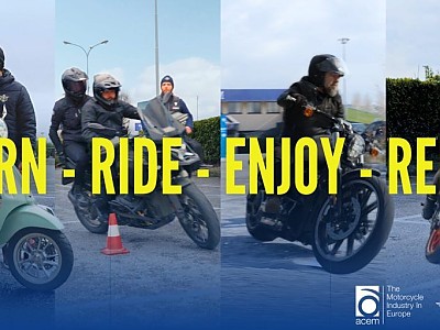 This is a European campaign encouraging motorcyclists to further develop their driving skills - "Learn - Drive - Have a good time - Repeat"